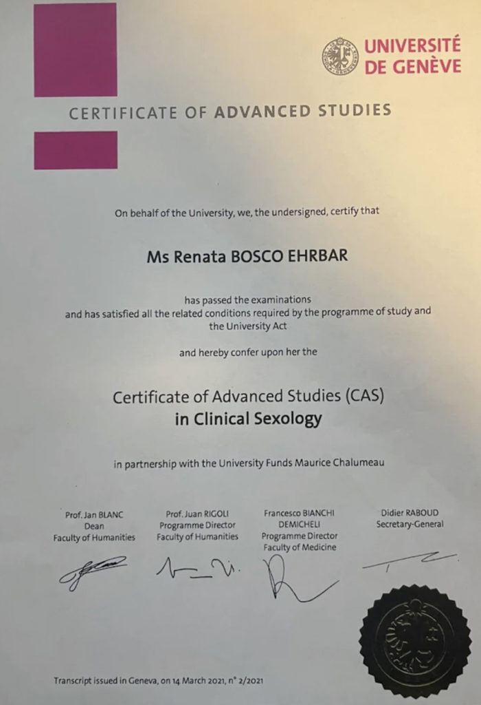 - Certificate in Advanced Study in Clinical Sexology – Université de Genève